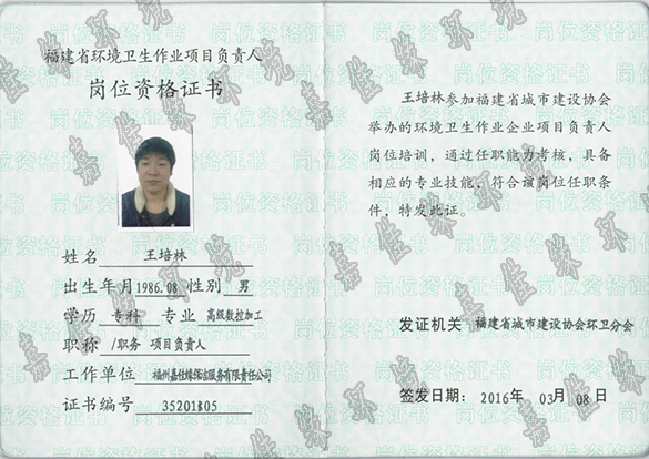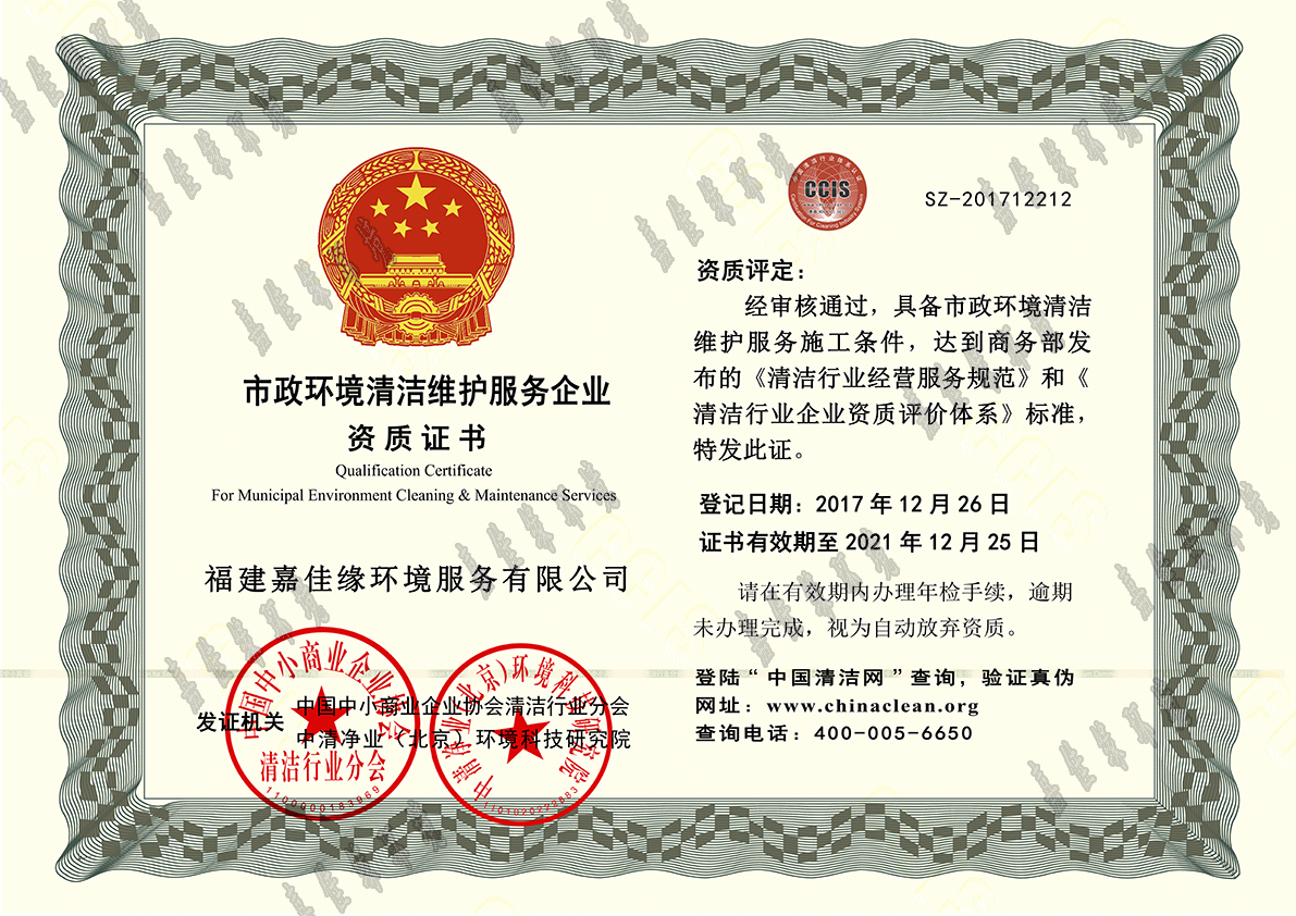 - 市政環(huán)境清潔資質(zhì)證書(shū)