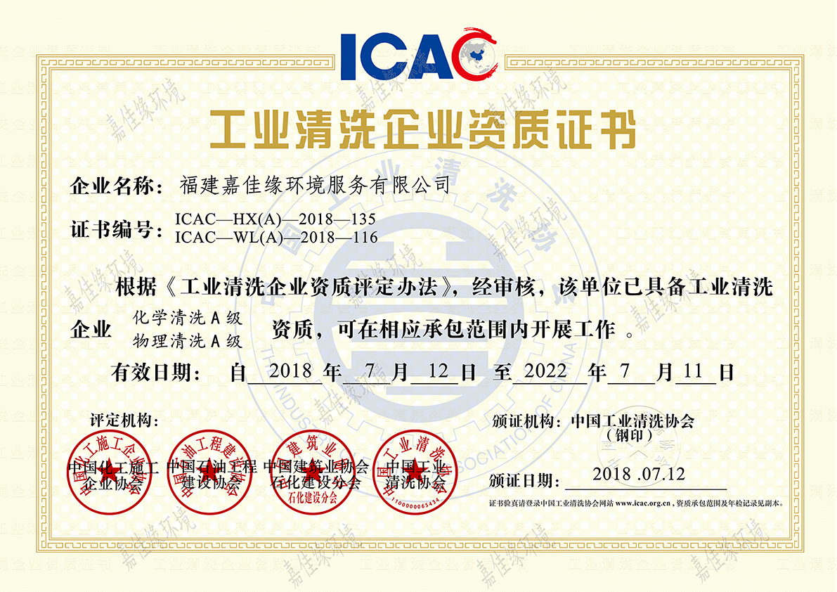 - 工業(yè)清洗企業(yè)資質(zhì)證書(shū)