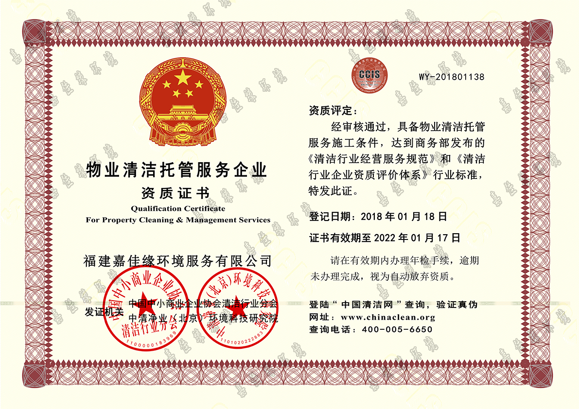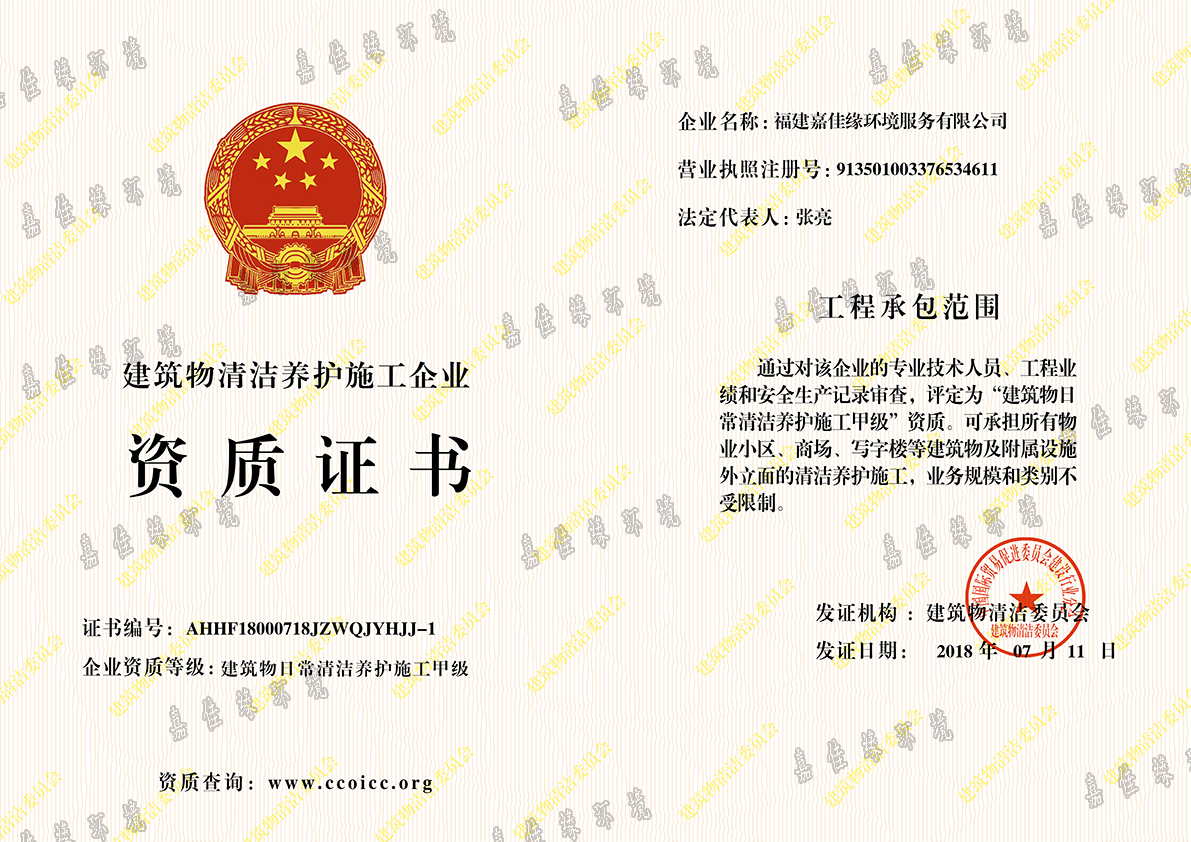 - 建筑物清潔養(yǎng)護(hù)施工企業(yè)資質(zhì)證書(shū)