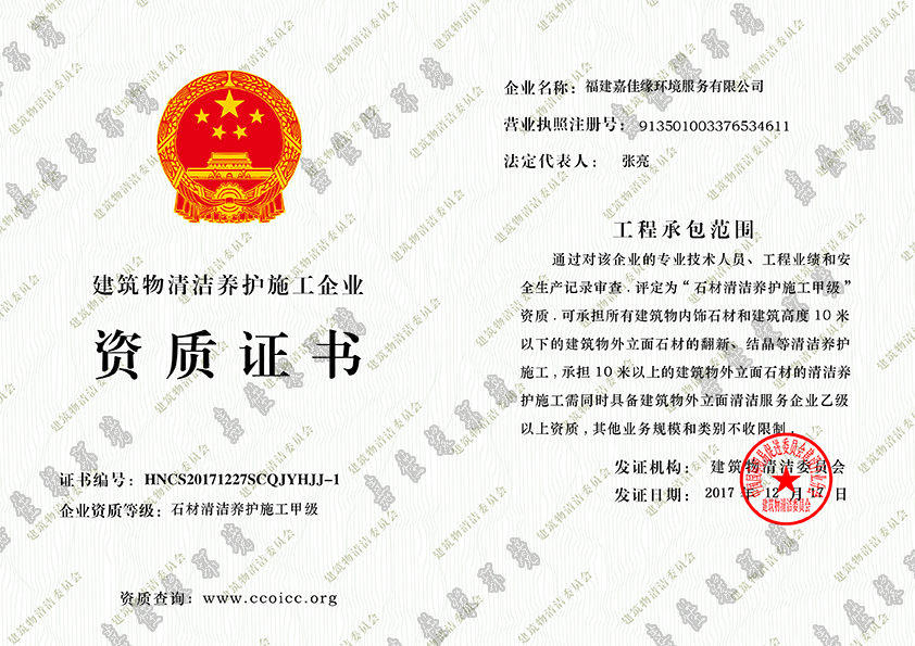 - 石材清潔養(yǎng)護(hù)施工資質(zhì)