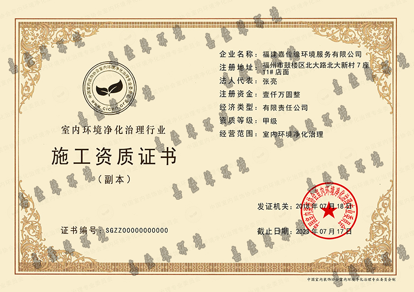 - 室內(nèi)環(huán)境凈化治理資質(zhì)證書(shū)