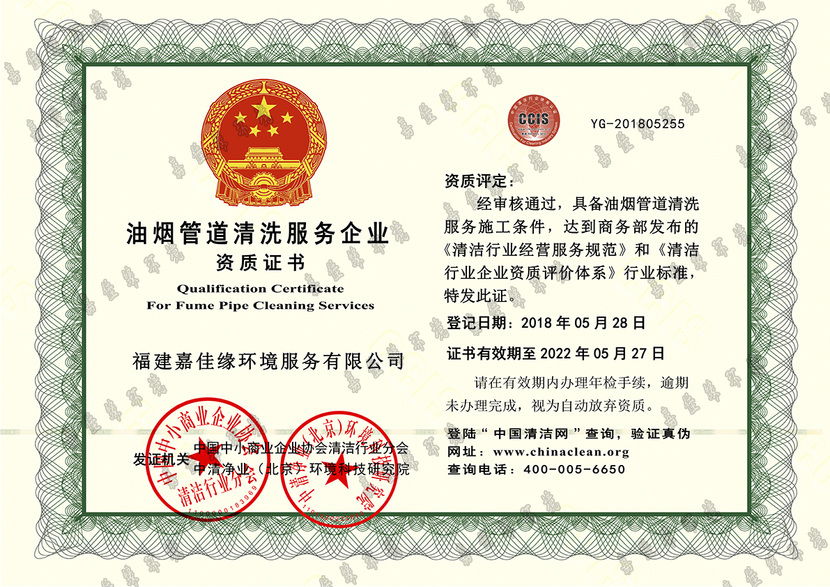 - 中央空調(diào)甲級(jí)專(zhuān)業(yè)清洗證書(shū)
